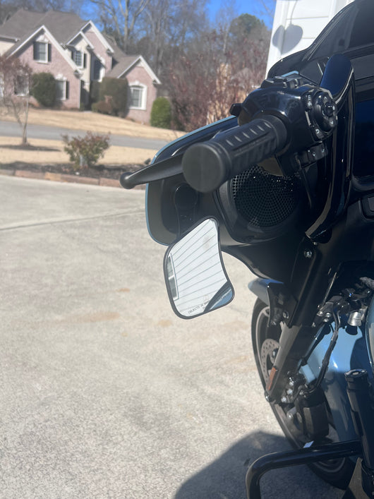 -Designed for the street glide fairing mounted mirrors. 10" and 12" bars are going to put your hands in the way of your stock mirrors. These brackets drop your stock mirrors down 3.5" allowing you to keep a sleek and concealed look rather than the alternative of bar mounted mirrors.