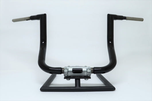 -Depending on where the handlebars are positioned in the riser, your hands will be anywhere from 4"-8" above stock and about 3" closer to the rider when positioned the farthest back to the rider without interfering with the gas tank.